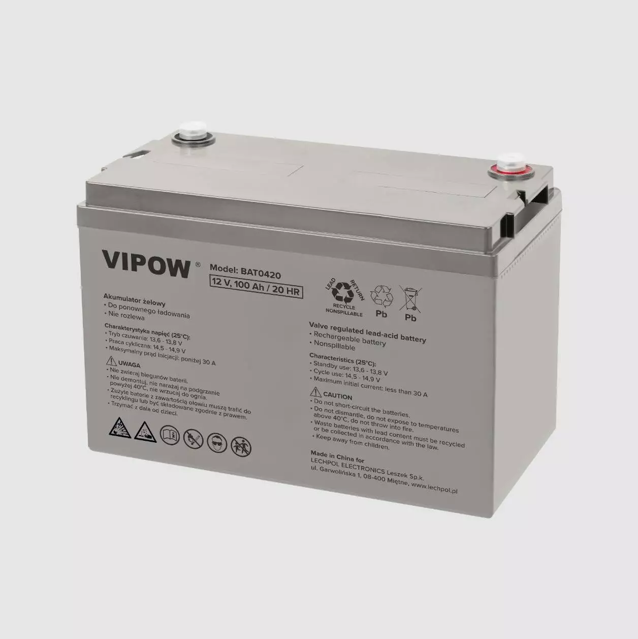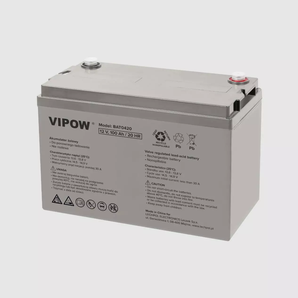 Акумулятор гелевий для ДБЖ та інверторів 12V 100Ah VIPOW BAT0420
