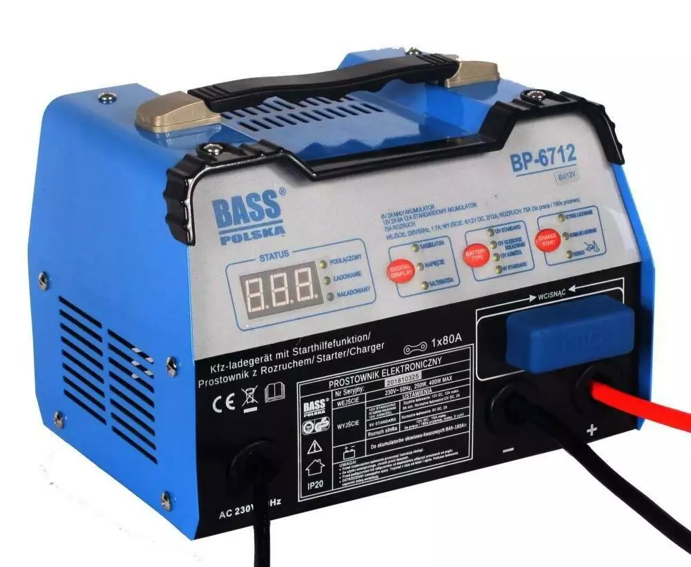 Зарядний пристрій Bass Polska призначений для заряджання та імпульсної зарядки акумуляторів 6В та 12В, ємністю 8-180Ач: