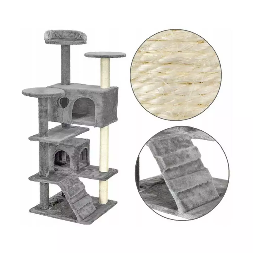 - Стовпи, обмотані сизалевою мотузкою, дозволяють коту доглядати за своїми кігтями, мінімізуючи пошкодження меблів.