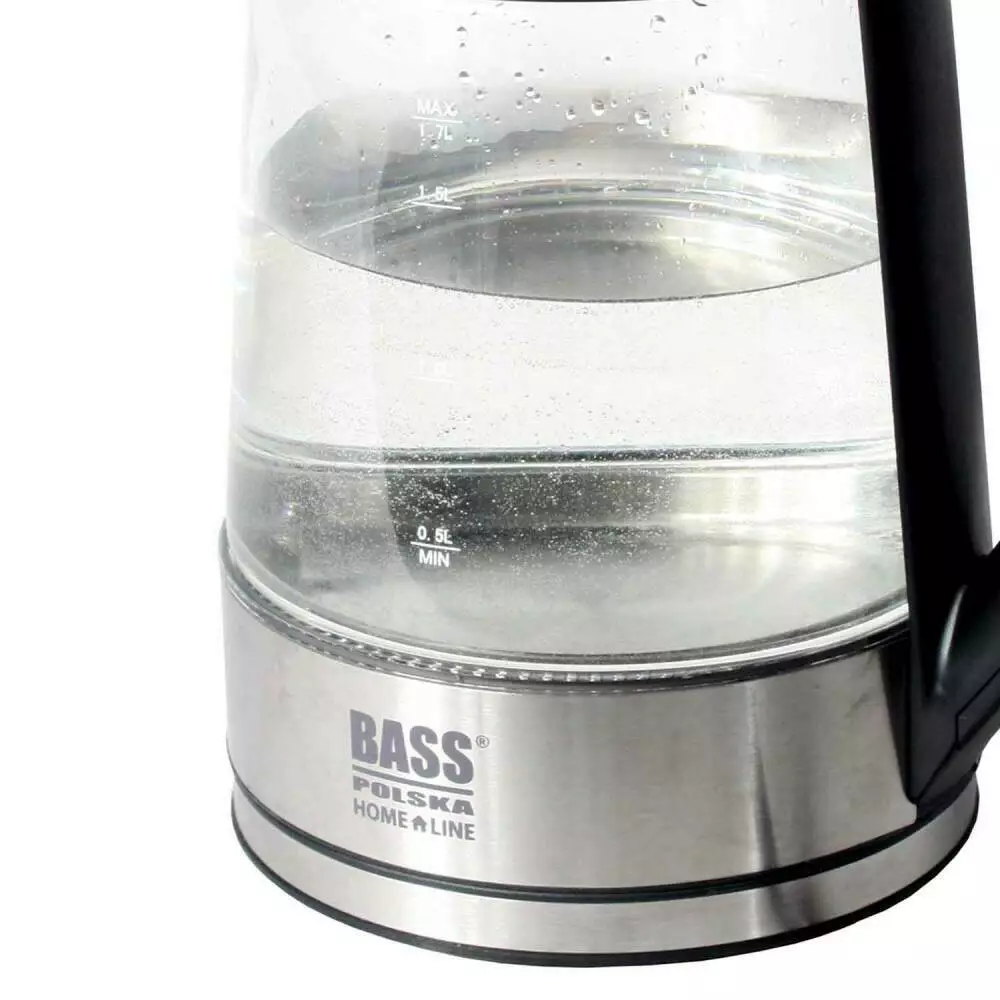 ЕЛЕКТРИЧНИЙ ЧАЙНИК З РЕГУЛЮВАННЯМ ТЕМПЕРАТУРИ І СВЕТОДІОДНОЮ ПІДСВІТКОЮ Потужність: 1850 - 2200 Вт Напруга: 230 В, 50/60 Гц Місткість: 1,7 л Регулювання температури: кожні 10 градусів у діапазоні 40 – 100°С Матеріал: екологічний пластик, що не містить BPA. ПЕРЕВАГИ ЕЛЕКТРИЧНОГО ЧАЙНИКА BASS POLSKA Зручний електричний чайник для будинку Електричний скляний чайник із регульованою температурою Bass Polska дозволяє нагрівати та кип'ятити воду, а також регулювати температуру залежно від типу чаю чи кави. Вбудована нагрівальна плита дозволяє закип'ятити навіть невелику кількість води. Швидке встановлення бажаної температури можливе завдяки електронно-керованій панелі зі світлодіодами, яка знаходиться в ручці чайника. Таке рішення гарантує швидкий і зручний вибір підходящої функції і водночас дозволяє чайнику займати менше місця на кухонній стільниці. ФІЛЬТР ВІД НАКИПІ І СКЛЯНИЙ БАК Електричний чайник Bass Polska оснащений фільтром проти накипу, який уловлює дрібні домішки, такі як частинки накипу. Він захищає від потрапляння осаду в посудину та гарантує чистоту води. Бак електрочайника Bass Polska виконаний із скла, що дозволяє чітко контролювати рівень води. Про зміну температури сигналізує кільце з світлодіодами, що змінюють колір, розташоване в центрі чайника. ФУНКЦІЇ ПІДТРИМАННЯ ТА РЕГУЛЮВАННЯ ТЕМПЕРАТУРИ Функція підтримки температури буде надзвичайно корисною, коли ви хочете підтримувати постійну температуру води протягом тривалого часу, наприклад, коли приходять гості. Кнопки зміни та підтримання температури на ручці чайника та можливість згортання кабелю під основу роблять електрочайник Bass Polska практичним, функціональним та зручним. Використання бездротового чайника Bass Polska не потребує багато місця, завдяки функціям, якими він оснащений, він займає мало місця на кухонному столі.