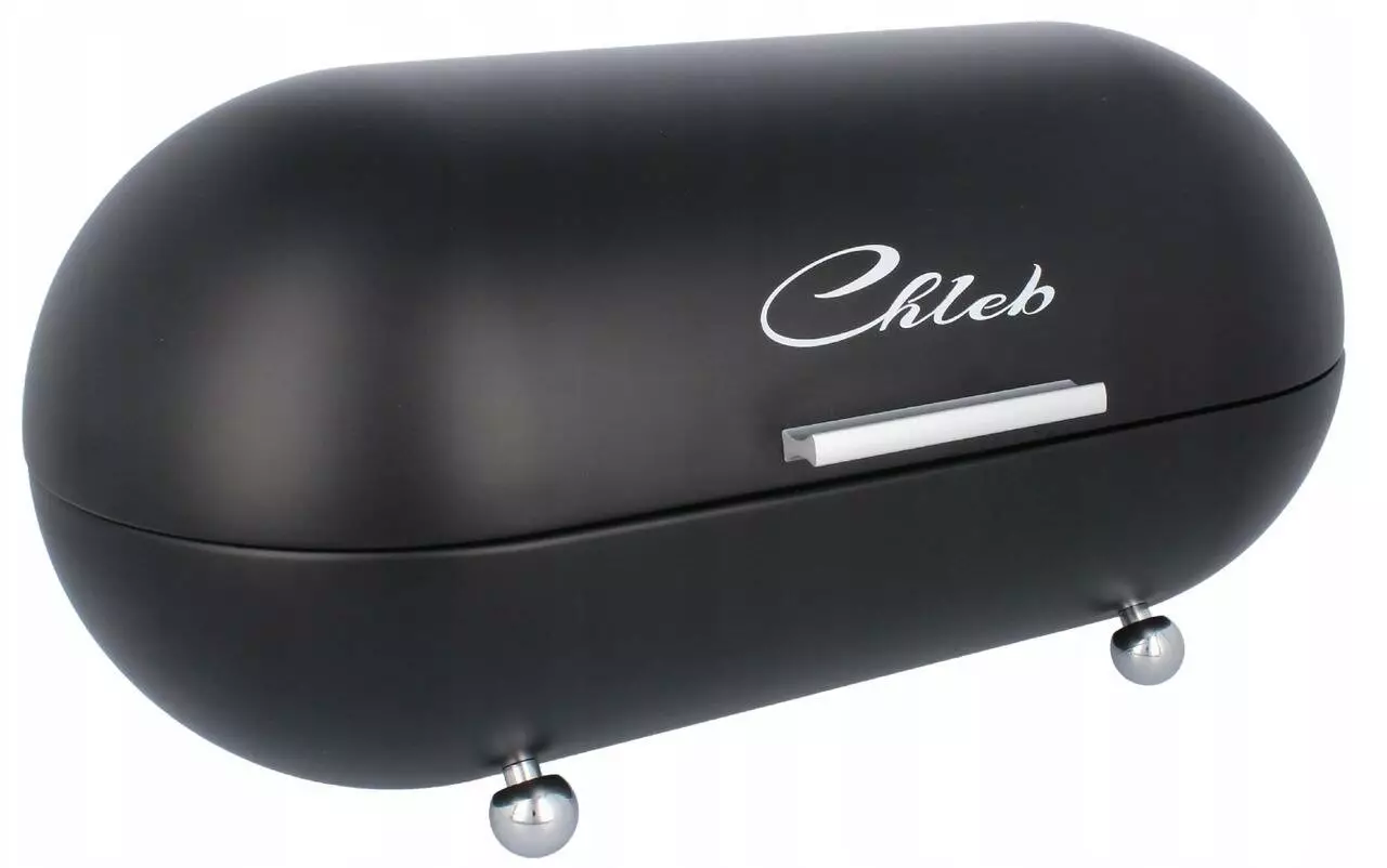 Металева емальована хлібниця в сучасному дизайні в чорному кольорі. Її металева конструкція дозволить вам тривалий час зберігати свіжість хліба, ефективно захистить від висихання та можливості утворення плісняви. Зручне відкривання сприяє доступу до зберіганих продуктів. Завдяки ньому ваша выпічка завжди буде смачною і хрумкою!