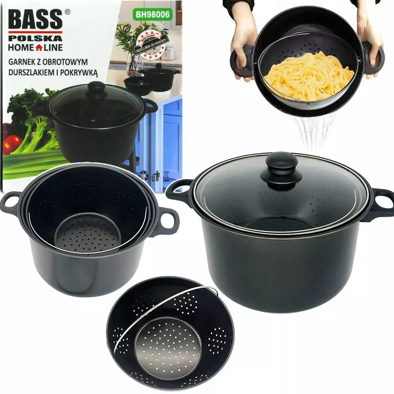 Каструля з друшляком та кришкою Bass Polska BH 98006