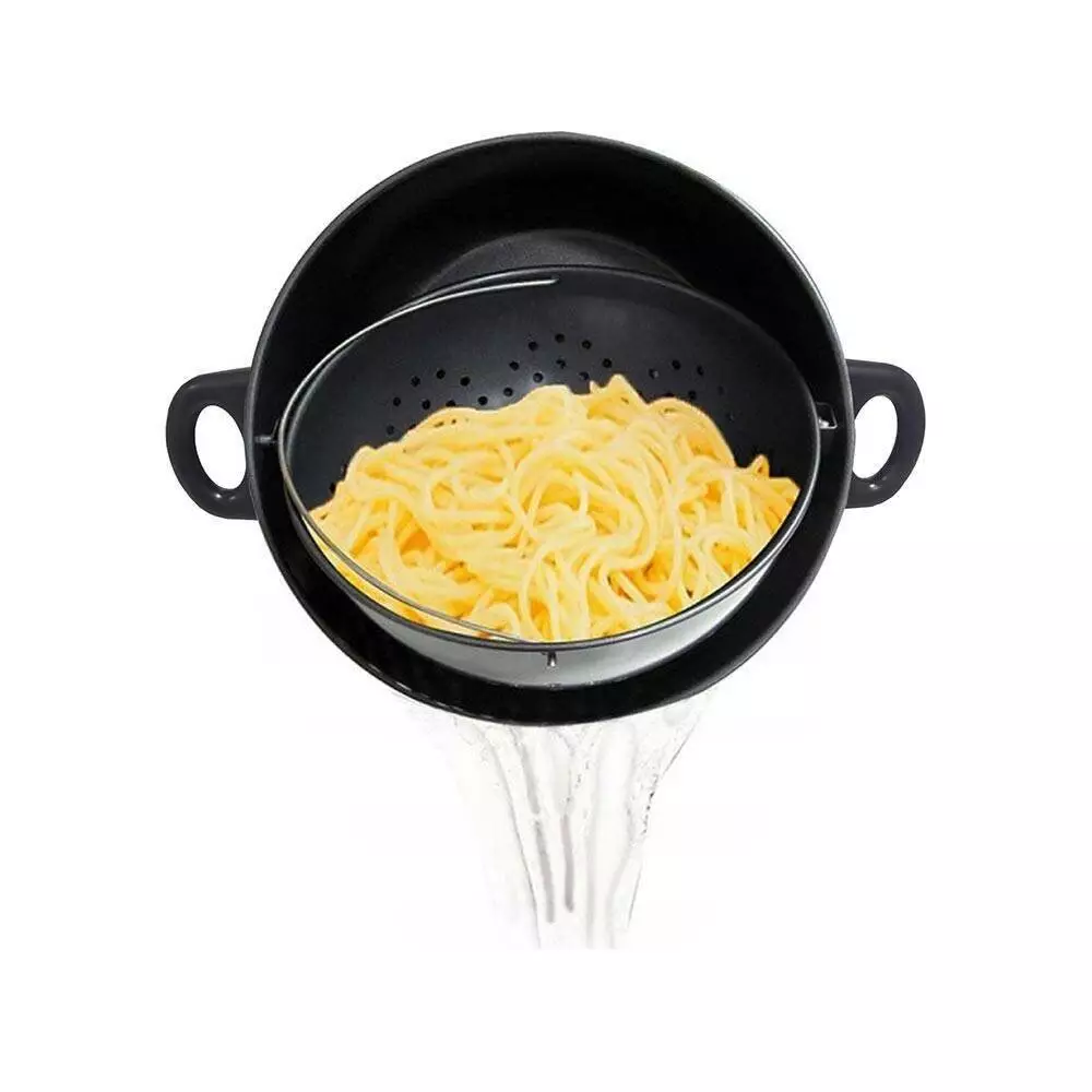 - Каструля з друшляком, що обертається, і кришкою - незамінний помічник при приготуванні макаронів, овочів, морепродуктів, яєць і багатьох інших продуктів.