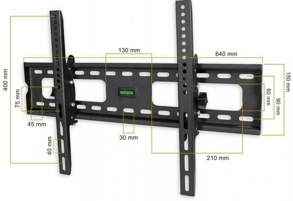 ПІДСТАВКА ДЛЯ ТБ 32–65 ДЮЙМІВ Підходить для телевізорів: від 32 до 65 дюймів. Максимальне навантаження: до 55 кг Відстань від стіни: 70 мм Регулювання по вертикалі: +/- 15° (вгору/вниз) Рухомі кронштейни: Так Колір: чорний з порошковим покриттям Вбудований спиртовий рівень: Так ВКЛЮЧЕНО тримач для телевізора Комплект гвинтів* Інструкція із встановлення * У комплект входять стандартні/універсальні гвинти, що підходять для більшості телевізорів. Якщо вони не підходять, придбайте відповідні гвинти самостійно! ПЕРЕВАГИ ПІДСТАВКИ ДЛЯ ТБ BASS POLSKA Призначений для РК-телевізорів зі світлодіодним підсвічуванням. Висока якість виготовлення із увагою до деталей. Унікальний дизайн. Регулювання нахилу. Невелика відстань до стіни (плоский дизайн). Корекція нахилу (вирівнювання помилок збирання). Сумісний зі стандартом VESA. Доступний у чорному кольорі. Сумісний зі стандартом VESA (відстань між монтажними отворами): VESA 100x100 (100 мм по горизонталі x 100 мм по вертикалі) VESA 200x100 (горизонтальний 200 мм x вертикальний 100 мм) VESA 200x200 (горизонтальний 200 мм x вертикальний 200 мм) VESA 200x300 (горизонтальний 200 мм x вертикальний 300 мм) VESA 200x400 (горизонтальний 200 мм x вертикальний 400 мм) VESA 300x200 (горизонтальний 300 мм x вертикальний 200 мм) VESA 300x300 (300 мм по горизонталі x 300 мм по вертикалі) VESA 400x200 (горизонтальний 400 мм x вертикальний 200 мм) VESA 400x400 (горизонтальний 400 мм x вертикальний 400 мм) VESA 600x400 (горизонтальний 600 мм x вертикальний 400 мм) І всі проміжні, наприклад, по горизонталі 431 х по вертикалі 378