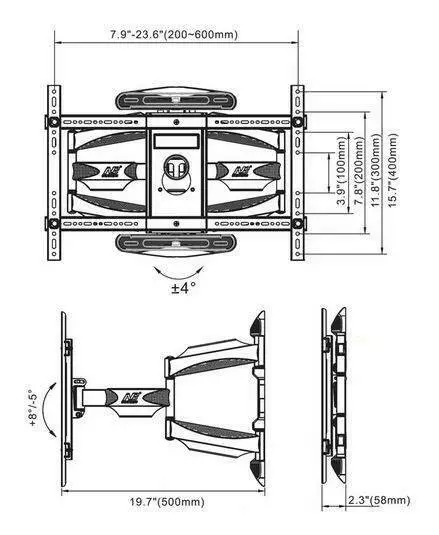 Кріплення для телевізора 45-70" Кріплення для телевізора 45-70 дюймів Розмір екрану: 45-70 дюймів Максимальне навантаження: 45,5 кг VESA: 200x200 ~ 600x400 мм Регулювання обертання до: 180° Регулювання нахилу: +8°/-5° Регулювання відстані до стіни: 58 ~ 500 мм Включено: Тримач для телевізора Комплект гвинтів* Інструкції з встановлення * У комплект входять стандартні/універсальні гвинти, що підходять для більшості телевізорів. Якщо вони не підходять, придбайте відповідні гвинти самостійно! Переваги кріплення для телевізора BASS POLSKA Призначений для плазмових РК-телевізорів зі світлодіодним підсвічуванням діагоналлю 45-70 дюймів. Універсальне регульоване плоске кріплення для телевізорів вагою 45,5 кг. Висока якість виготовлення із увагою до деталей. Унікальний дизайн. Регулювання нахилу. Поворотний важіль. Невелика відстань до стіни (плоский дизайн). Корекція нахилу (вирівнювання помилок збирання). Утримувач має сертифікат ISO. Сумісний зі стандартом VESA. Система керування кабелем. Маскуюча кришка закриває монтажні гвинти та кабелі. Доступний у чорному кольорі.
