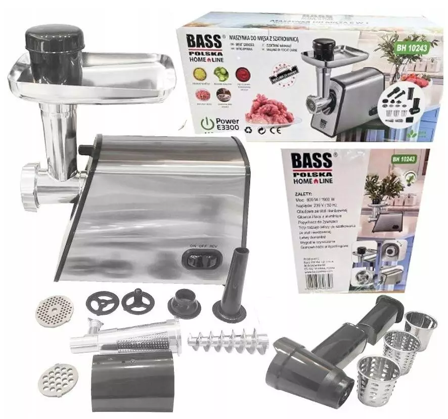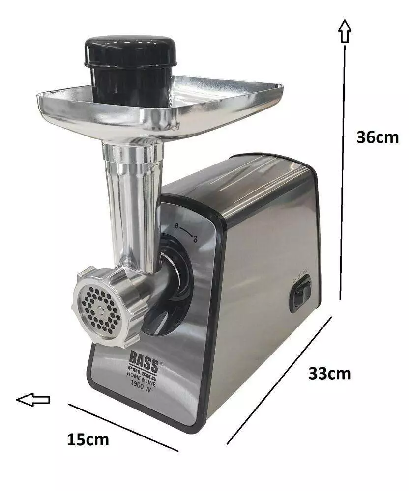 - М'ясорубка Bass Polska відрізняється високою якістю виготовлення та міцними матеріалами. Її потужний двигун потужністю 1900 Вт гарантує ефективну та швидку обробку м'яса.
