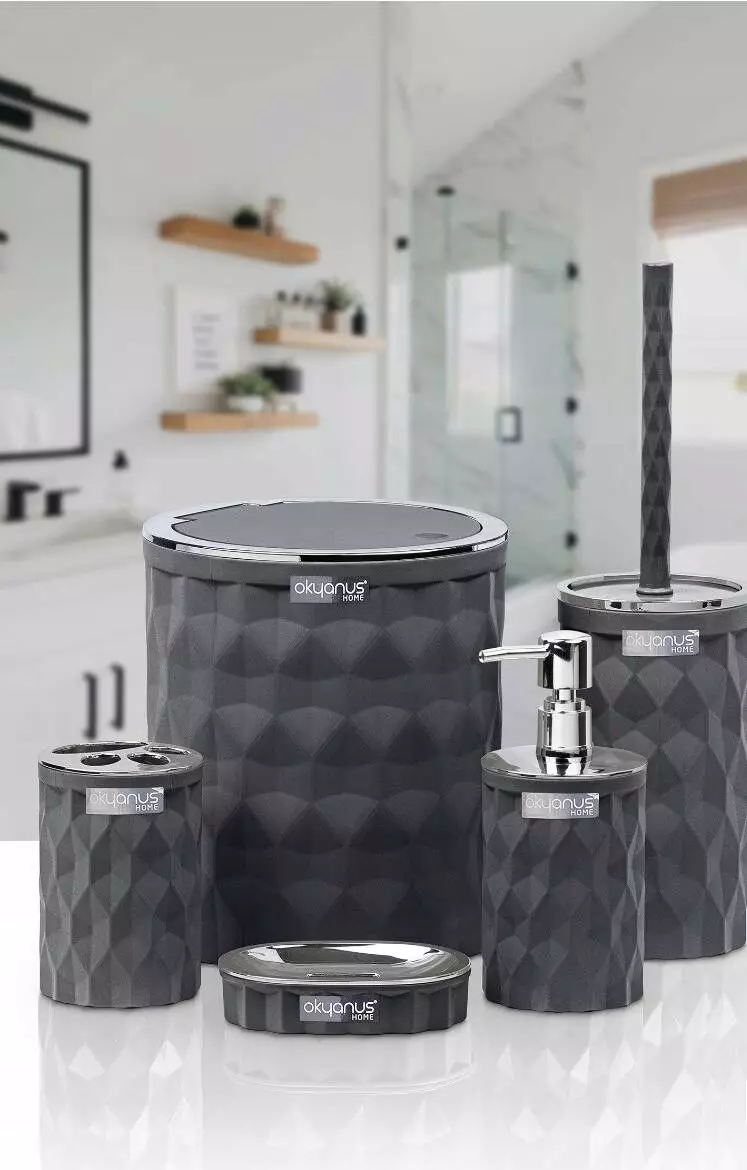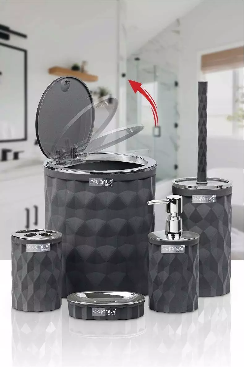 Набір аксесуарів для ванної кімнати із 5 шт, круглий сірий Chomik OKY4672
