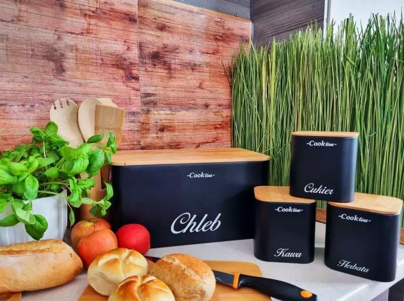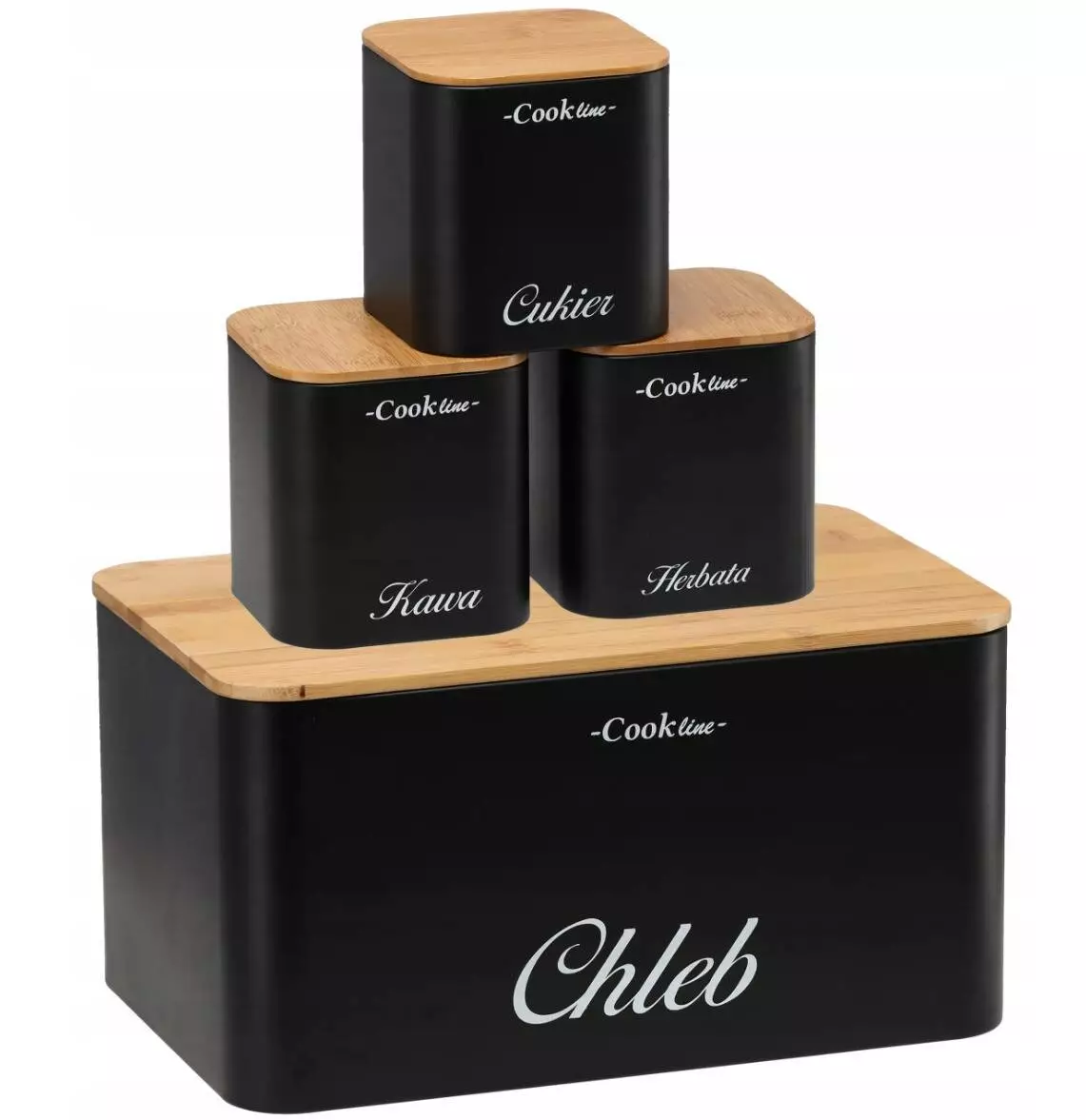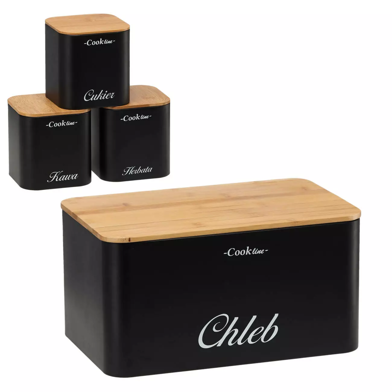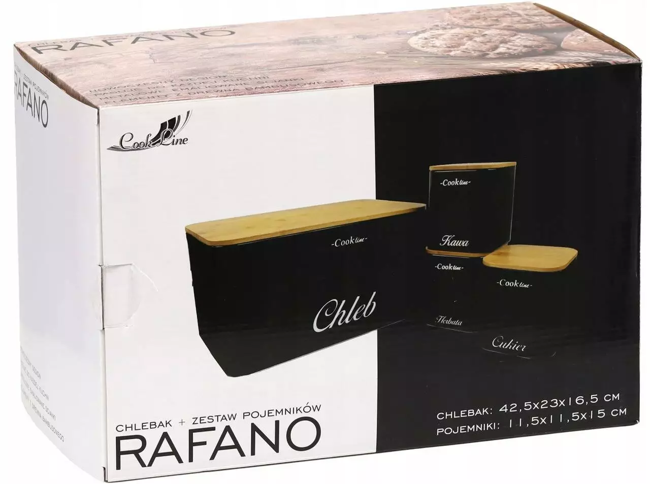 Набір із хлібниці та контейнерів Чорний Дерево Chomik RAFANO NEL7113