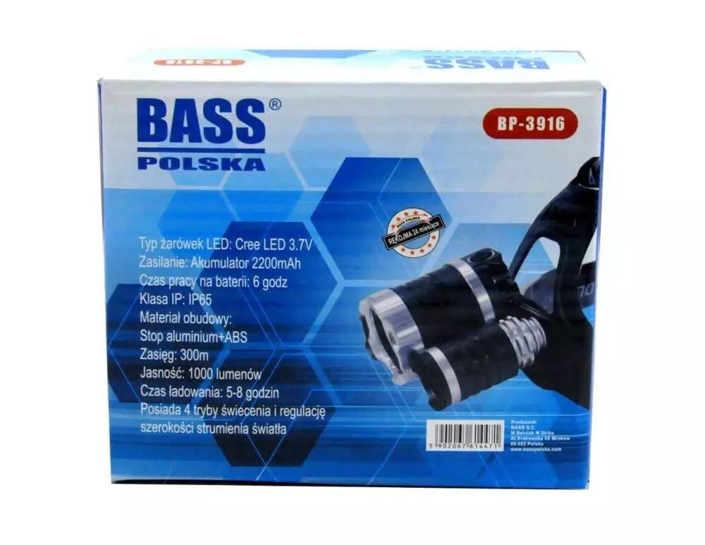Налобний світлодіодний ліхтар на 3 LED лампи Bass Polska