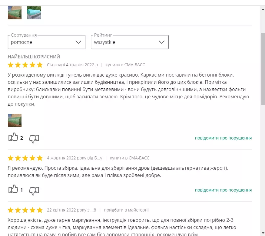 - Матеріал: поліетиленова плівка 140 г/м² з фільтром UV4