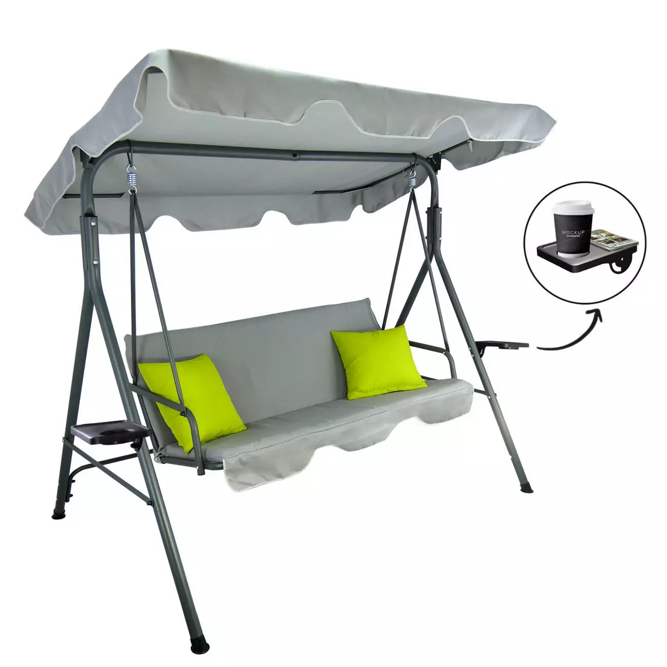 Гойдалки створені для всіх, хто любить проводити час у саду. Оснащений регульованим козирком, він захистить вас від сонця. Перевагою під час прибирання стануть знімні подушки. Все для самостійної збірки. У комплект входять всі необхідні гвинтові з'єднувачі та пружини