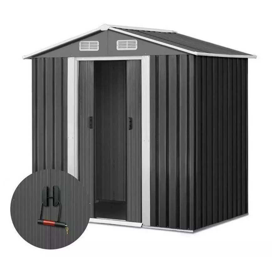 - Садовый домик для инструментов, приспособлений и садовой мебели из горячеоцинкованного стального листа, стойкого к погодным условиям.
