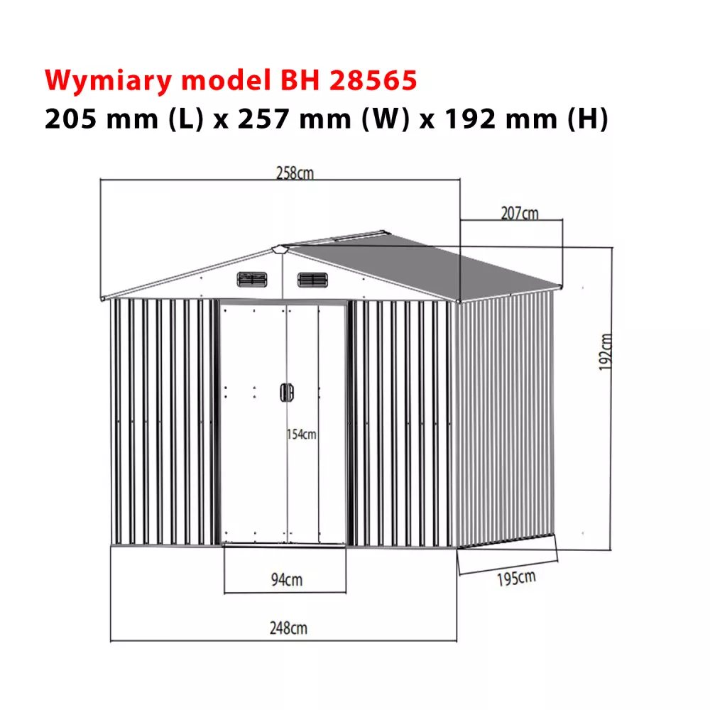 Сарай металевий 2 х 2,6 х 1,9 м Bass Polska BH 28565
