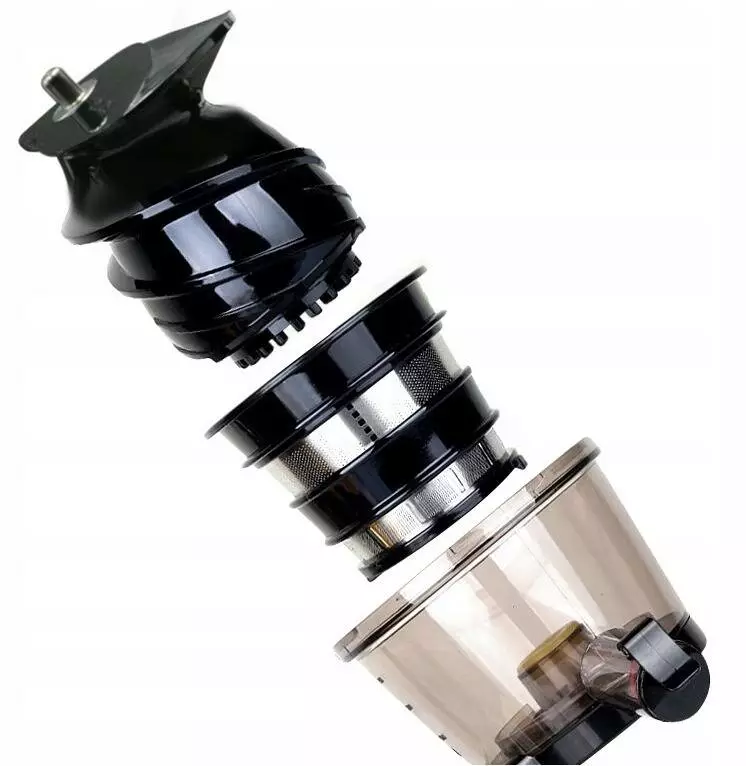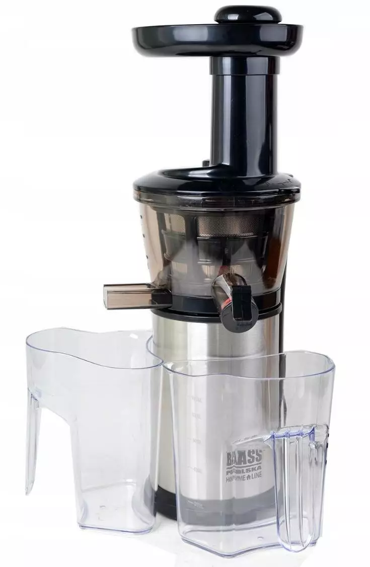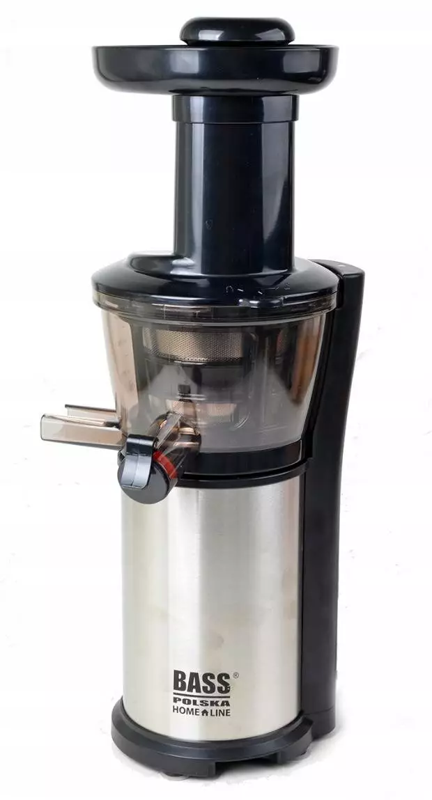 Соковижималка Bass Polska дуже проста в установці та використанні. Він складається з основи з двигуном, на якому встановлений шнек і сітчастий фільтр. Потім просто замініть пластикову кришку. Поставте глечик для соку та ємність для м’якоті з боків пристрою. Тоді просто поверніть ручку! Равлик почне крутитися!