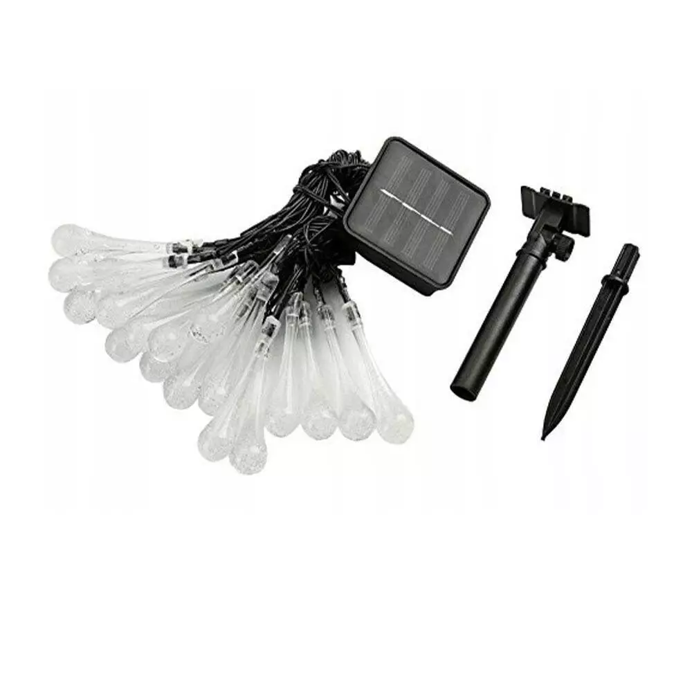 СОНЯЧНА САДОВА ГІРЛЯНДА Кількість світлодіодів: 30 шт. Довжина гірлянди: 7 м Відстань між бурульками: 15 см Колір світла: теплий білий, 2800 К Водонепроникність: IP 65 Ємність акумулятора: 600mAh, 1 x 1.2V AA Два режими освітлення: постійний / миготливий