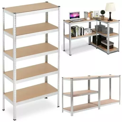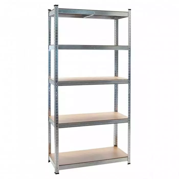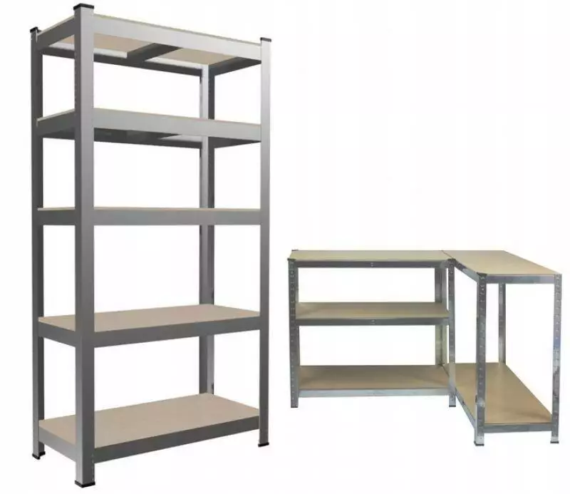 Стійкий стелаж з п'ятьма полицями - чудовий продукт для тих, хто любить порядок. Збірка всього займе всього 15 хвилин. Можливість змінювати відстань між полицями. Можливість створення 2 менших полиць. Притискна полиця