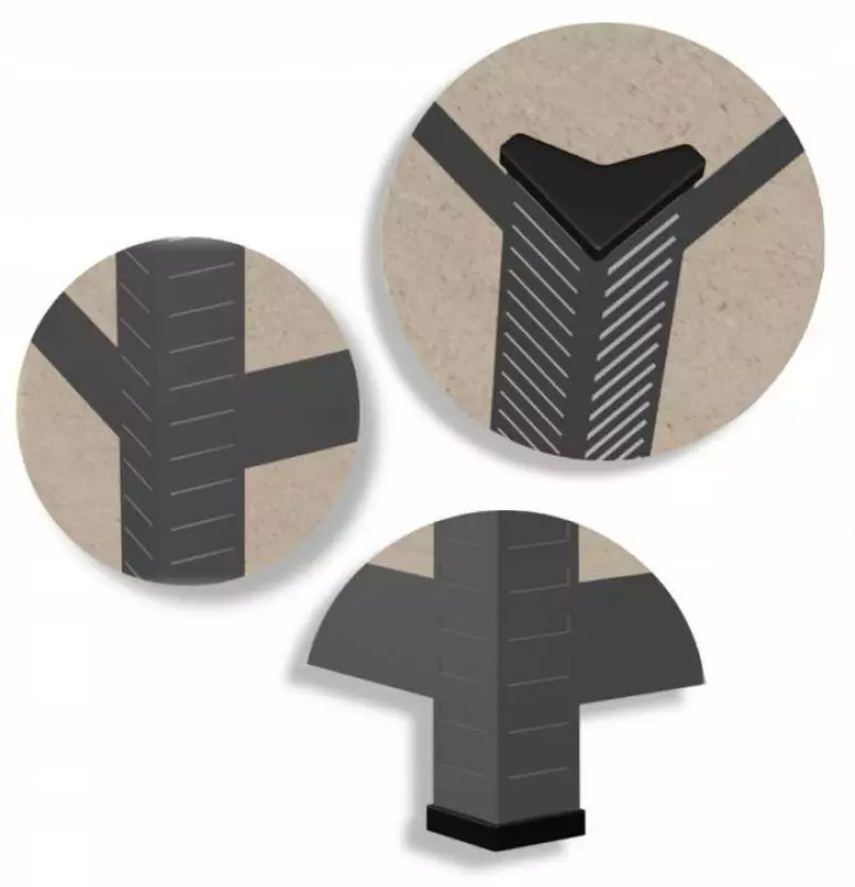 Всі торці металевих елементів оснащені пластиковими заглушками . Крім того, краї кожного елемента були відповідним чином профільовані . Це запобігає травмам, тому полиця безпечна для користувачів.