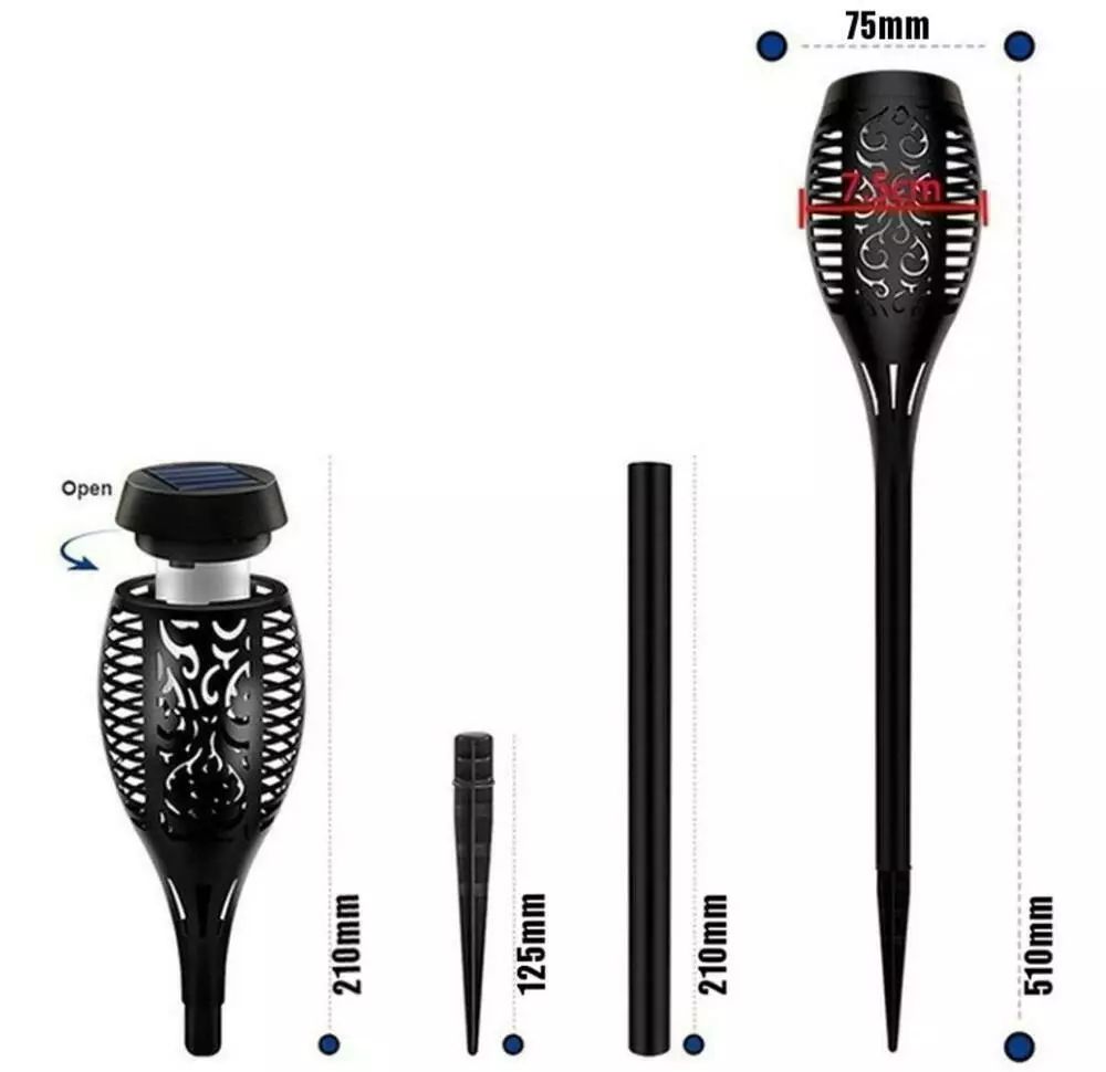 СОНЯЧНА САДОВА ЛАМПА - ФАКЕЛ САДОВИЙ СВІТОДІОДНИЙ СВІТИЛЬНИК З СОНЯЧНОЮ ПАНЕЛЄЮ Садовий факел з ефектом полум'я. Цілорічний сонячний світильник для вашого саду, стійкий до дощу та мінусових температур. Світлодіоди з дуже тривалим терміном служби. Вбудований акумулятор 2 В/0,6 Вт. Зручний перемикач на корпусі лампи. Світлодіодна сонячна лампа, оснащена автоматичним датчиком сутінків. Довгий кілочок дозволяє зручно встромити лампу в землю. Загальна довжина світильника після складання: 48 см. Сонячний факел послужить практичною прикрасою для підсвічування алей, доріжок, сходів тощо.