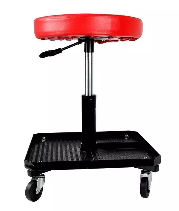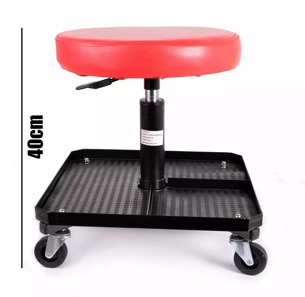 Стілець для майстерні з пневматичної регулюванням висоти в діапазоні 400-530 мм. Сидіння з екологічно чистої шкіри. На дні, лотки для інструментів і аксесуарів, необхідні під час роботи.
