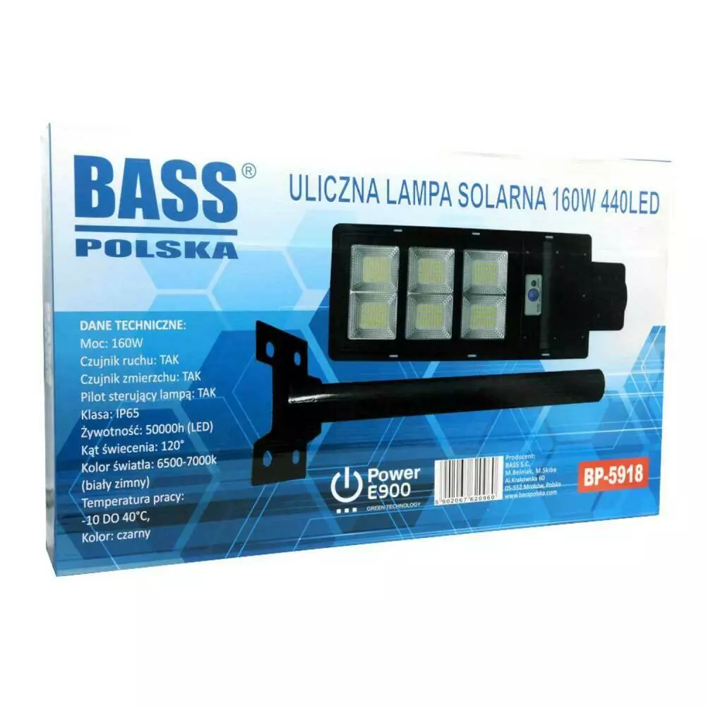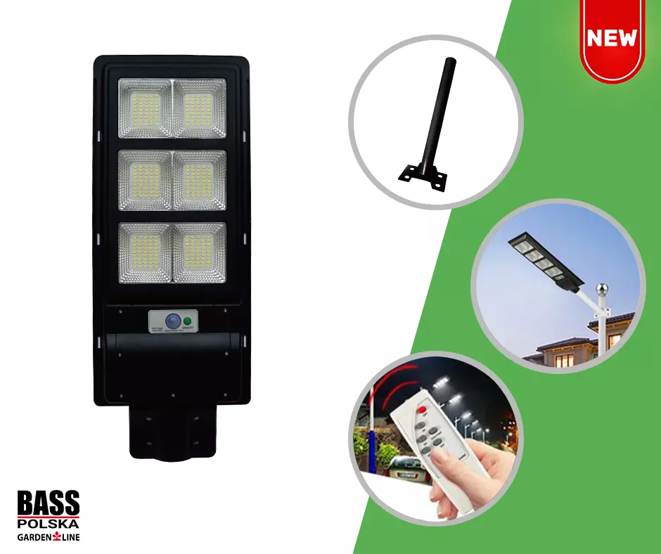 Вуличний світильник на сонячних батареях з датчиком руху та дистанційним керуванням 160 Вт Bass Polska 5918