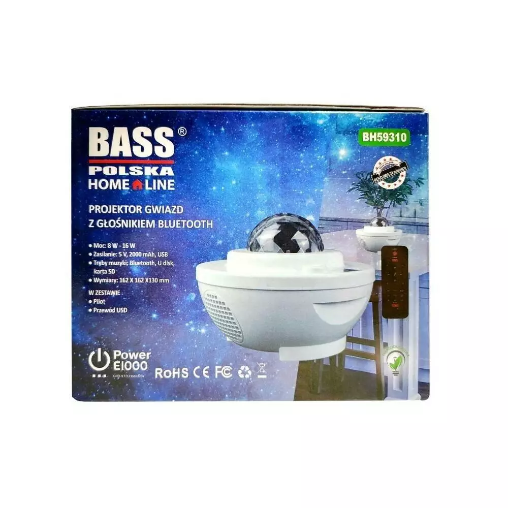 Зоряний проектор з динаміком Bluetooth, світлодіодний зоряний дисплей, білий Bass Polska BH 59310